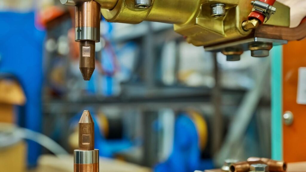 Copper is special because it is a fantastic conductor. It lets electricity flow through it easily without generating much heat. The steel workpiece, however, resists the electricity, which is what creates the heat. The copper tips actually help pull heat away from the surface, ensuring the melt happens inside the sheets, not on the outside.
